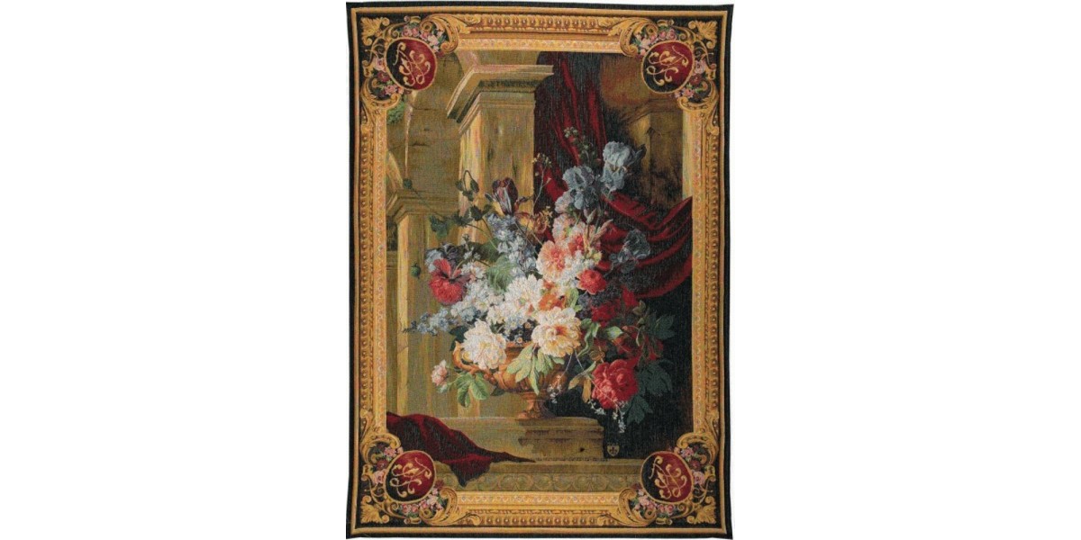 Tento vytříbený francouzský gobelín, tkaný na jacquardových stavech v dílnách Art de Lys, přináší do interiéru noblesu barokního 17. století. Ústředním motivem je bohatý, dekorativně komponovaný květinový bouquet, který se rozvíjí před jemně modelovaným klasickým architektonickým pozadím. Kombinace florálního přepychu a monumentální architektury vytváří harmonii, jež působí zároveň slavnostně i uklidňujícím způsobem.